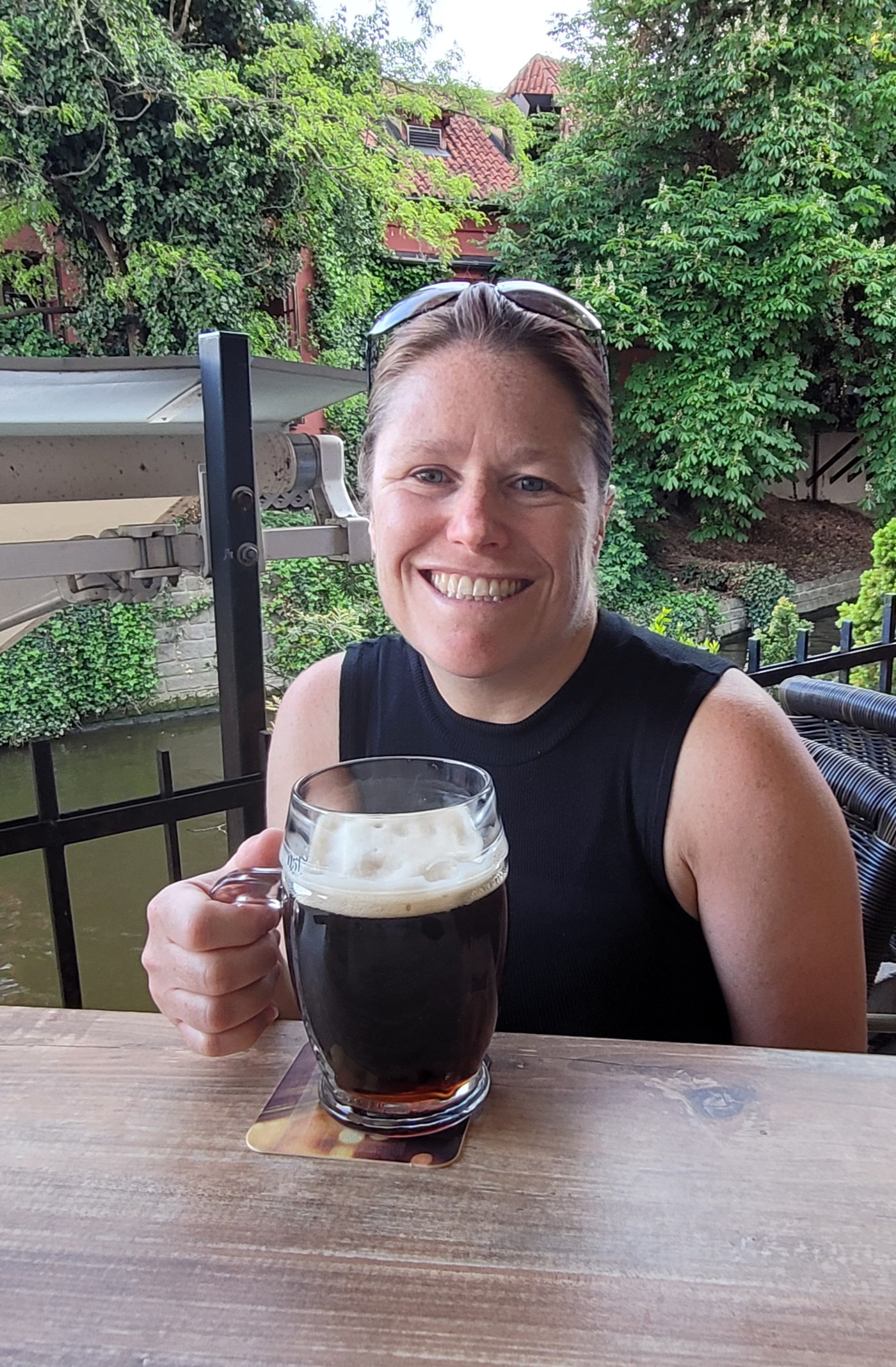 The trek back did get long, and we ran out of water. It was hot, I was parched, and I did have to dig deep a little. I focused on keeping the pace as we had a target. A huge beer garden that overlooks the canal that we saw the day before.